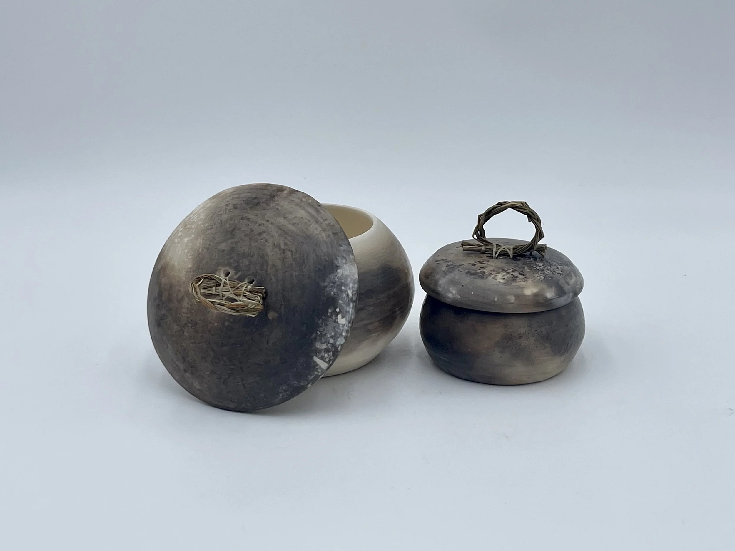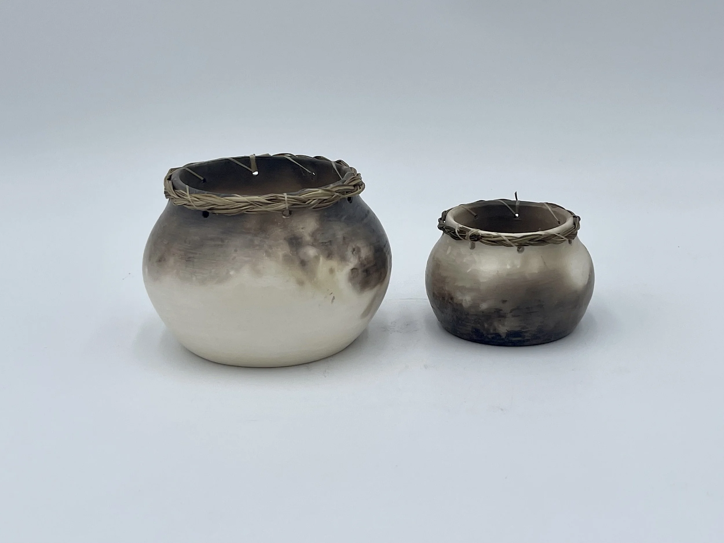 Production Collection Lidded $45 small $65 large Dream pot $75 Petroglyph Cups $55 Smudge Bowls sm $40, med $65 Lg. $95 Smoke-fired Cups $55 Round sm $30, lg. $65 Dream Ornaments $40 Sweet Swirl Wall Hangings $25 view next collection >